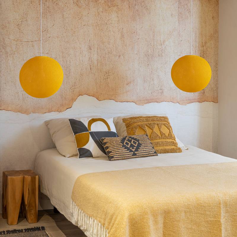 La forma rotonda e il colore curry, intenso e moderno, aggiungono un tocco di personalità a qualsiasi arredamento, donando energia visiva senza rinunciare all’eleganza. Il foro superiore facilita il montaggio come lampada a sospensione.