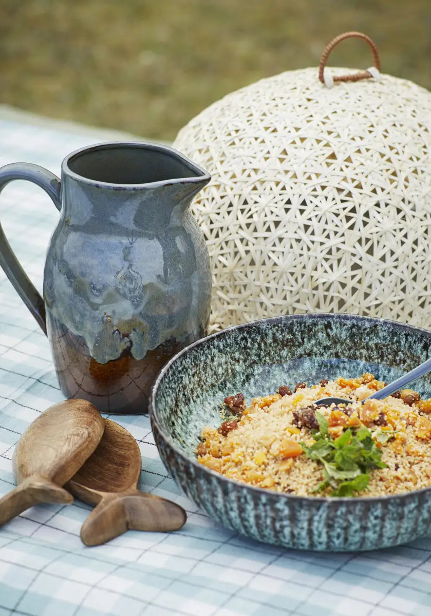 Questa ciotola in gres dalla tonalità petrolio, arricchita da piccoli punti neri, può essere utilizzata per frutta, biscotti o come piatto da portata assieme agli altri elementi del set da pranzo. Pratico ed elegante, questa ciotola è lavabile in lavastoviglie e adatta al microonde.