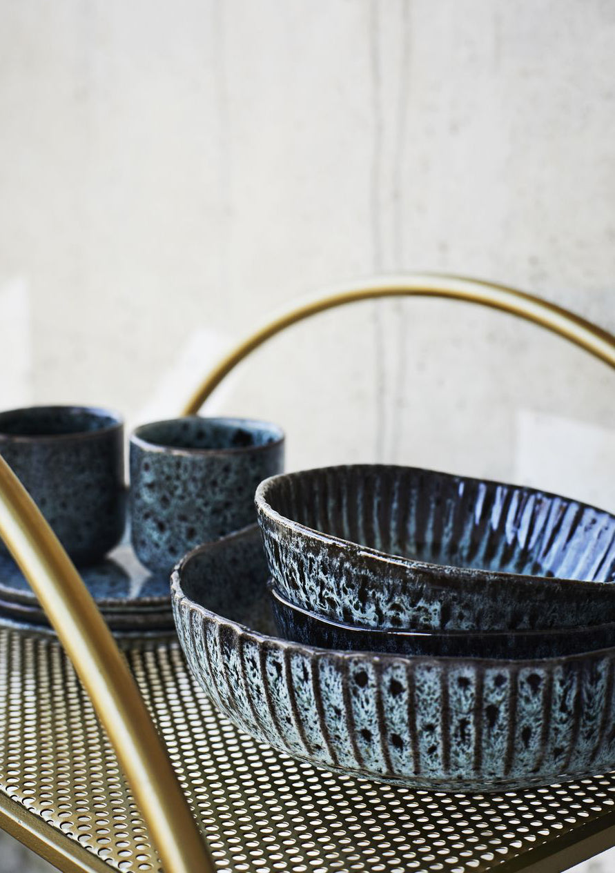 STONEWARE SERVING BOWL PETROL BLACK