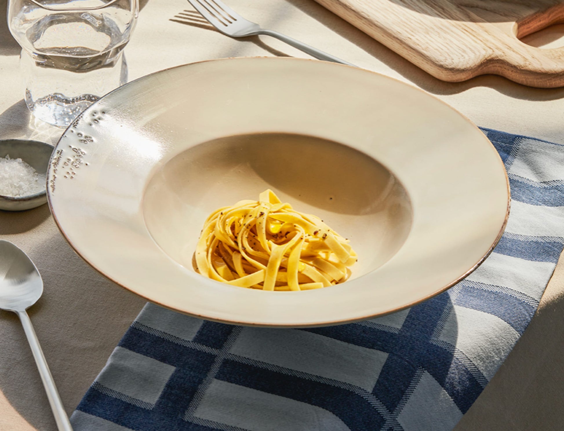 Il piatto fondo per pasta Nordic Sand di Broste Copenhagen è realizzato in gres e smaltato a mano in una delicata tonalità beige, ispirata alla sabbia e ai paesaggi della natura nordica. La particolare tecnica di cottura genera sfumature sempre diverse, rendendo ogni pezzo unico per texture e carattere. Perfetto da abbinare agli altri elementi della collezione Nordic Sand per creare una mise en place dal fascino autentico, rustico e naturale.